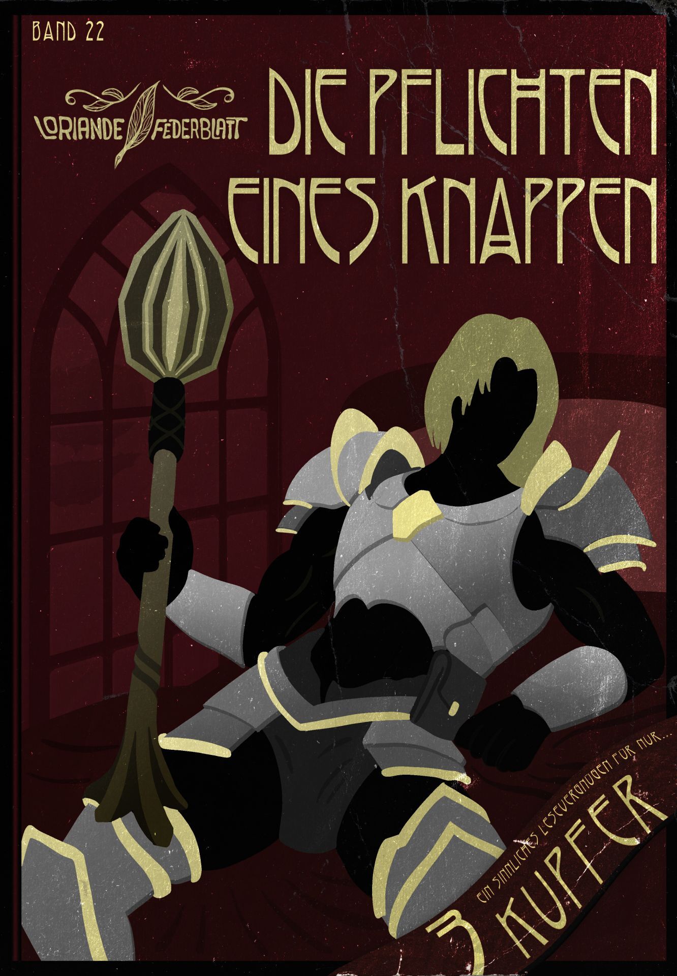 Bei dieser Ausgabe handelt es sich um eine handschriftliche Festeinband-Abschrift des 3-Kupfer Romans: “Die Pflichten eines Knappen” von Loriande Federblatt, die als Archiv-, Zier- oder Sammler-Ausgabe anzusehen ist.