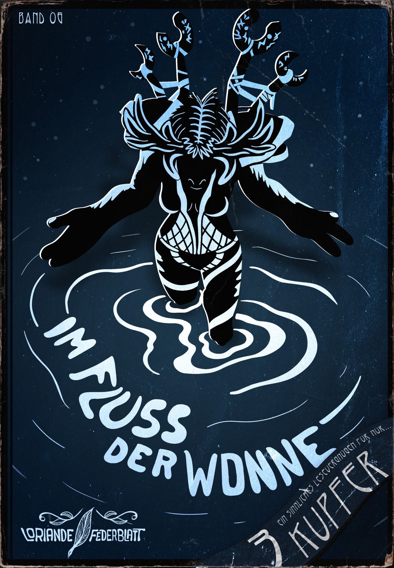 Bei dieser Ausgabe handelt es sich um eine handschriftliche Festeinband-Abschrift des 3-Kupfer Romans: “Im Fluss der Wonne” von Loriande Federblatt, die als Archiv-, Zier- oder Sammler-Ausgabe anzusehen ist.